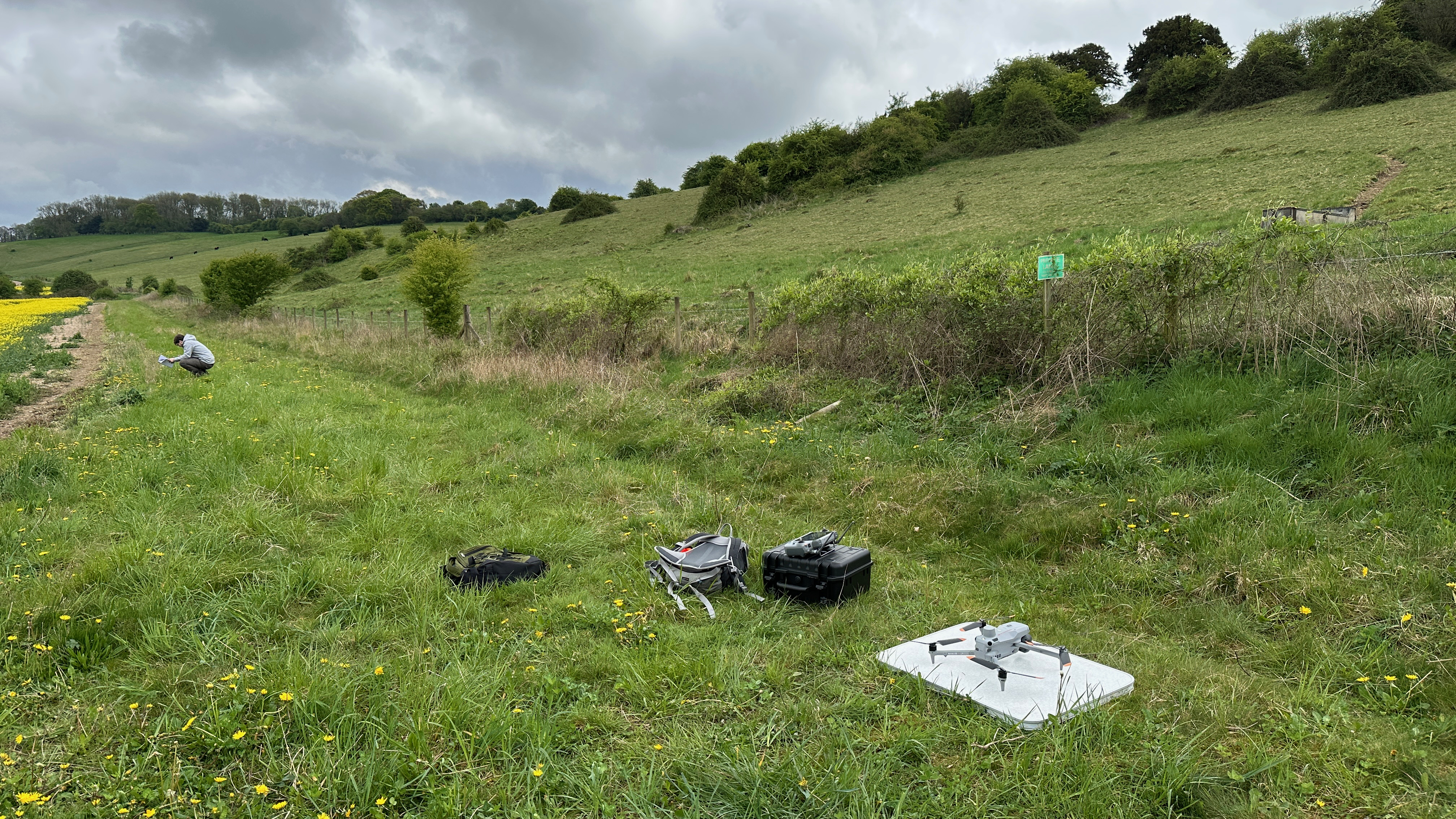 To accurately model pollinator health, researchers require precise data on local floral resources within a 1km radius of sampling sites. While ground-based surveys are feasible in regions with large, uniform fields, the UK landscape is significantly more diverse and fragmented. To address this, the Connected Environments team is deploying drone-based remote sensing to capture high-resolution orthomosaic data, allowing for the rapid mapping of complex terrains and varied crop types that are difficult to survey on foot.