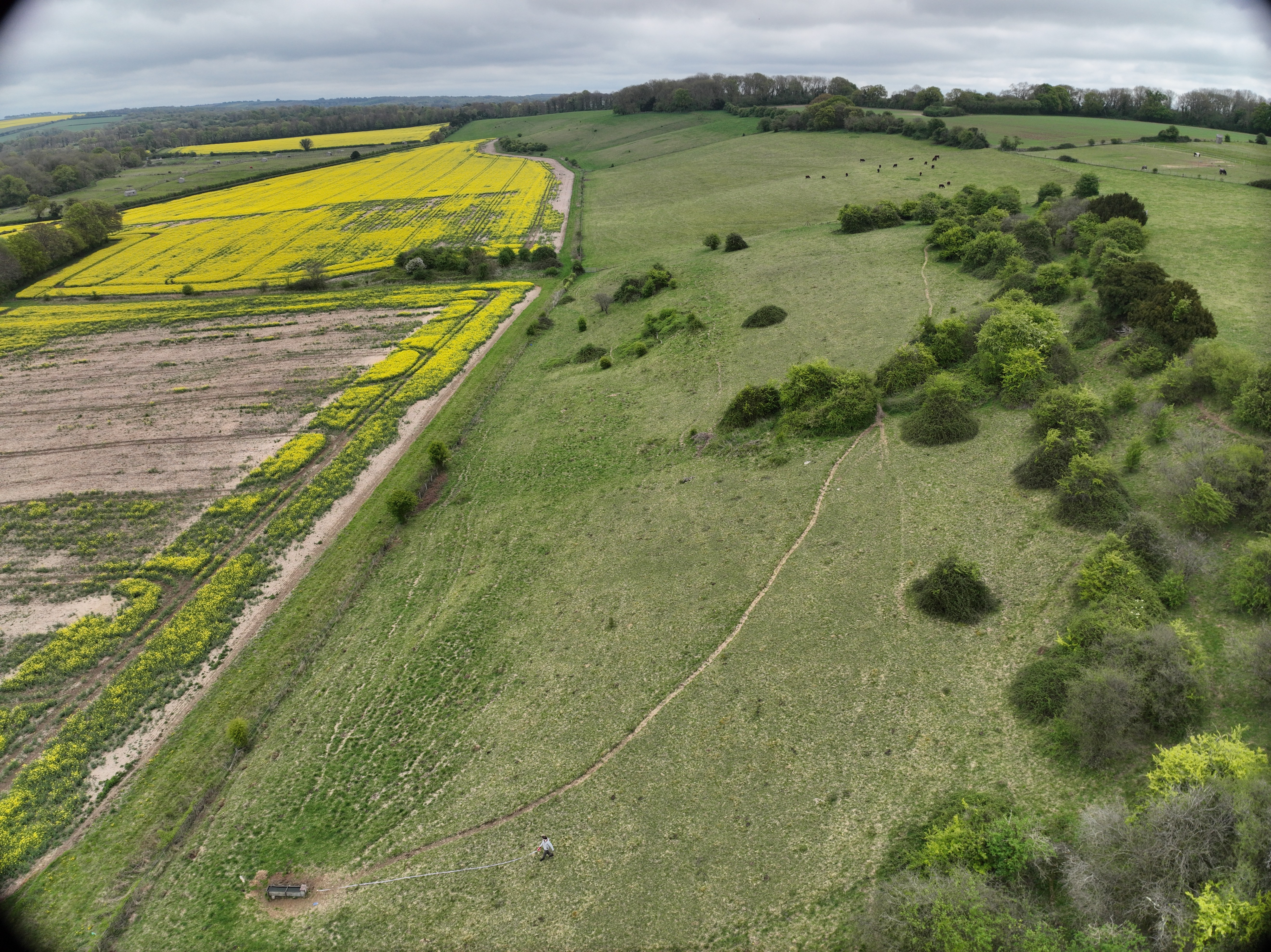 We utilized DJI Matrice 4E to capture large-scale orthomosaic data across Hampshire. A primary technical challenge involved managing the hilly topography of the region, which standard fixed-altitude flight paths could not safely navigate. Terrain Follow was required to prevent collisions and maintain a consistent Ground Sampling Distance (GSD), with Above Ground Level (AGL) settings enabled. This required downloading Digital Surface Model (DSM) files in the field to enable dynamic height adjustment. While terrain-following increased the GSD from a planned 0.33 to roughly 0.67–0.9, it ensured a safe and successful capture of 43GB of raw data.